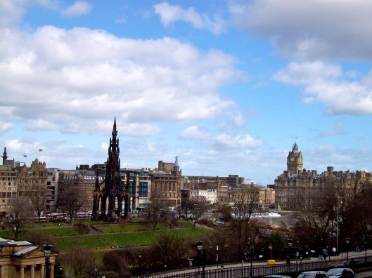 As I disembarked the train it took me awhile to orient myself. For April it was lovely–sunny and warm and not at all what I expected for Scotland. (I expected gloomy weather. That much I did know about Scotland.) There was the token bagpiper on the corner for tourists and every building looked as though it was ancient. Probably because they all were. I almost feel a little ashamed sometimes that I come from a country that is really in its infancy compared to other areas of the world where everything is all about being shiny and new.