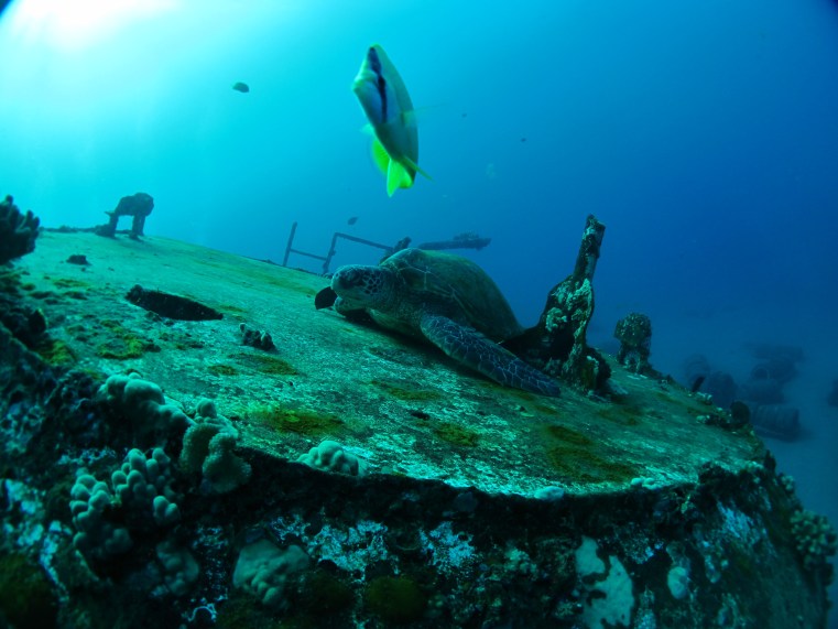 Giant Sea Turtle on the wreck dive we did in Maui